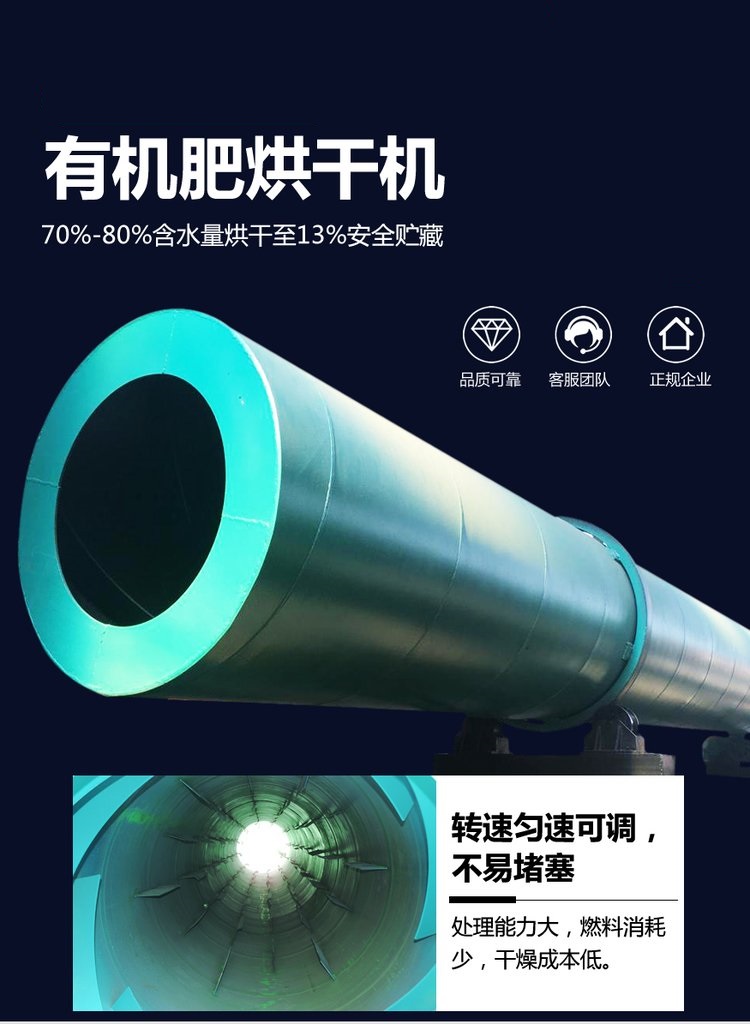 使用有機(jī)肥烘干機(jī),將造粒好的顆粒,進(jìn)一步去除水分,達(dá)到有機(jī)肥含水率的標(biāo)準(zhǔn)要求。