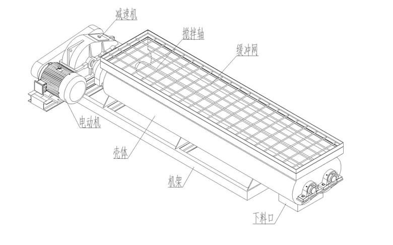 雙軸攪拌機攪拌區域內裝有旋轉反向的漿葉,漿葉成一定角度將物料沿軸向、徑向循環翻攪,使物料迅速混合均勻。主要用于預加水成球工藝流程中,當定量的生料粉由下料口流入攪拌糟中,經若干個具有一定壓力的水霧化撒向生料粉,由定性長度的軸經攪拌葉攪勻后形成含水一致的球核,并輸送到預加水成球盤中去,整個攪拌分為霧化區,拌勻區、卸料區三個區域。攪拌葉上焊硬質金刀頭,耐磨性能好;適合于兩種以上肥料,添加劑預混料得混合,及配合飼料、濃縮飼料、添加劑預混飼料等的混合。